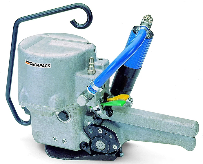 · 免用鐵扣,采三點上下沖模咬合,利用上下沖模機構將鋼帶打出三個陰陽扣互相咬合,抗斷裂強度可達85% ,相較傳統(tǒng)鐵扣結合更強韌。